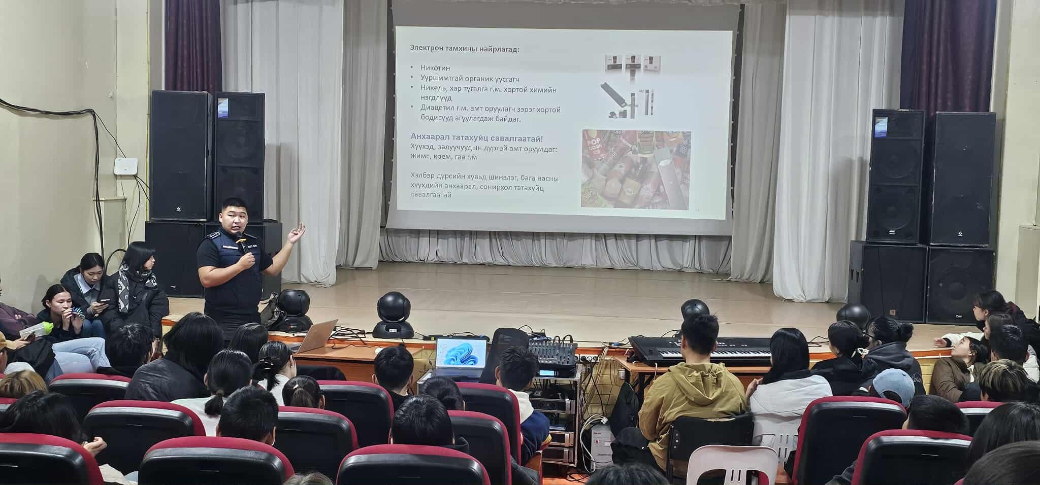 Хүүхдийн гэмт хэрэг зөрчлөөс урьдчилан сэргийлэх дэд зөвлөлөөс "СОЁЛ ТҮГЭЭЕ" аяны хүрээнд МАНСУУРАЛГҮЙ ИРЭЭДҮЙН ТӨЛӨӨ ХАМТДАА уриалгын дор Электрон тамхины эрүүл мэндэд үзүүлэх нөлөөлөл сургалтыг Сэлэнгэ аймгийн цагдаагийн газрын Хар тамхитай тэмцэх, эрүүгийн ахлах мөрдөгч, цагдаагийн ахмад Г.Гантогтохтой хамтран ЕБС-ийн 8 дугаар ангийн 3 бүлгийн 90 сурагч, 9-12 дугаар ангийн 172 хүүхдэд нийт 260 гаруй сурагч хүүхдүүдэд сургалт нөлөөллийн ажлыг зохион байгууллаа.